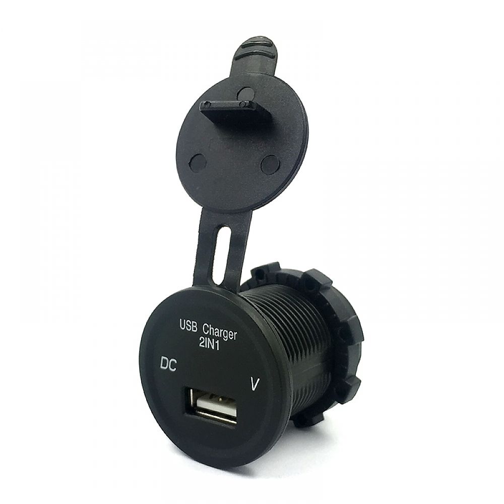 Автомобильный круглый врезной вольтметр c портом зарядки 1xUSB 2.1A